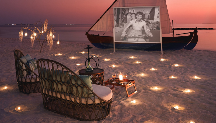 Savour secluded moments under the stars with your loved ones. Your impromptu private cinema will project any film you desire, accompanied by your bespoke selection of gourmet snacks and drinks.