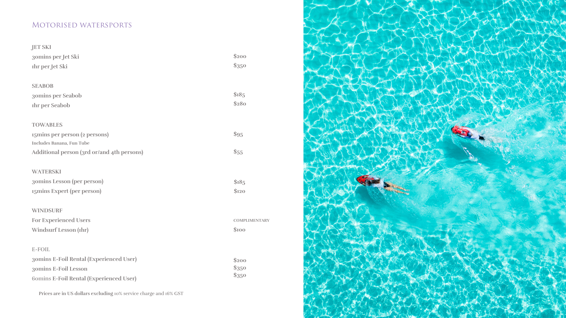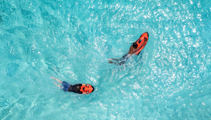 Navigate Baa Atoll's aquamarine waters with our Seabob, an electronically powered diving scooter. Fly underwater while exploring hidden coves and stunning views.