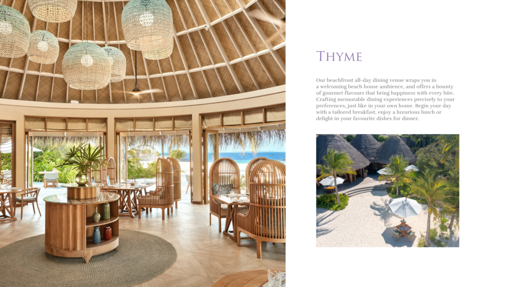 Veer off-menu and explore epicurean delights, crafted by our expert chefs to suit your exact tastes. A feast for your senses as you sink your toes into the powdery sand, surrounded by stunning turquoise waters of the Indian Ocean.