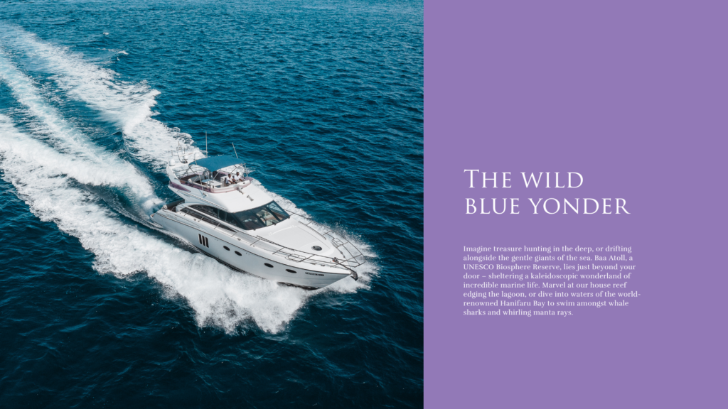 Indulge in the lap of luxury aboard your private yacht while the Maldives' crystalline waters reveal the wonders of its inhabitants. Create meaningful moments in the company of those who matter most.