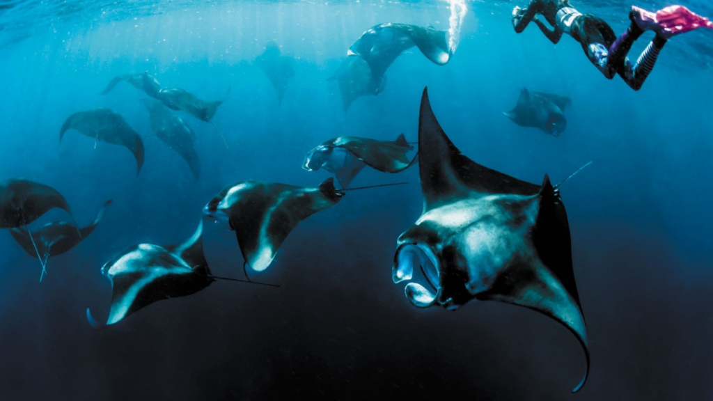 Twirl gracefully with the gentle giants of the deep at Hanifaru Bay, one of the largest feeding hotspots in the world for manta rays and whale sharks.