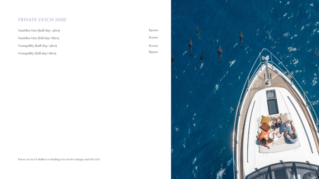 Cruise through azure waters, stop at exclusive sandbanks, and enjoy personalised service as you uncover the opulent side of this tropical haven.